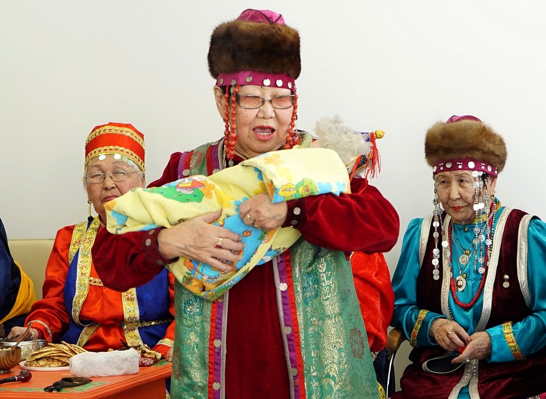Предлагаем вашему вниманию статью М. М. Николаевой, опубликованную в 1929 году в Бурятоведческом сборнике. "До рождения ребенка, старшие в семье, или отец, или мать, приносят жертву «Заябарин–басаганда» (создательнице-девице) в виде тарасуна и барана, а в бедной семье только отслуживается молебен одним тарасуном без барана, и лишь иногда, в случаях тяжелых родов, приносится в жертву баран. Обряды жертвоприношения производятся приглашенным шаманом. При появлении родовых схваток, приглашаются соседки, в том числе одна пожилая, которая должна перерезать пуповину и которую поэтому называют «төөдэй» (бабушка)".